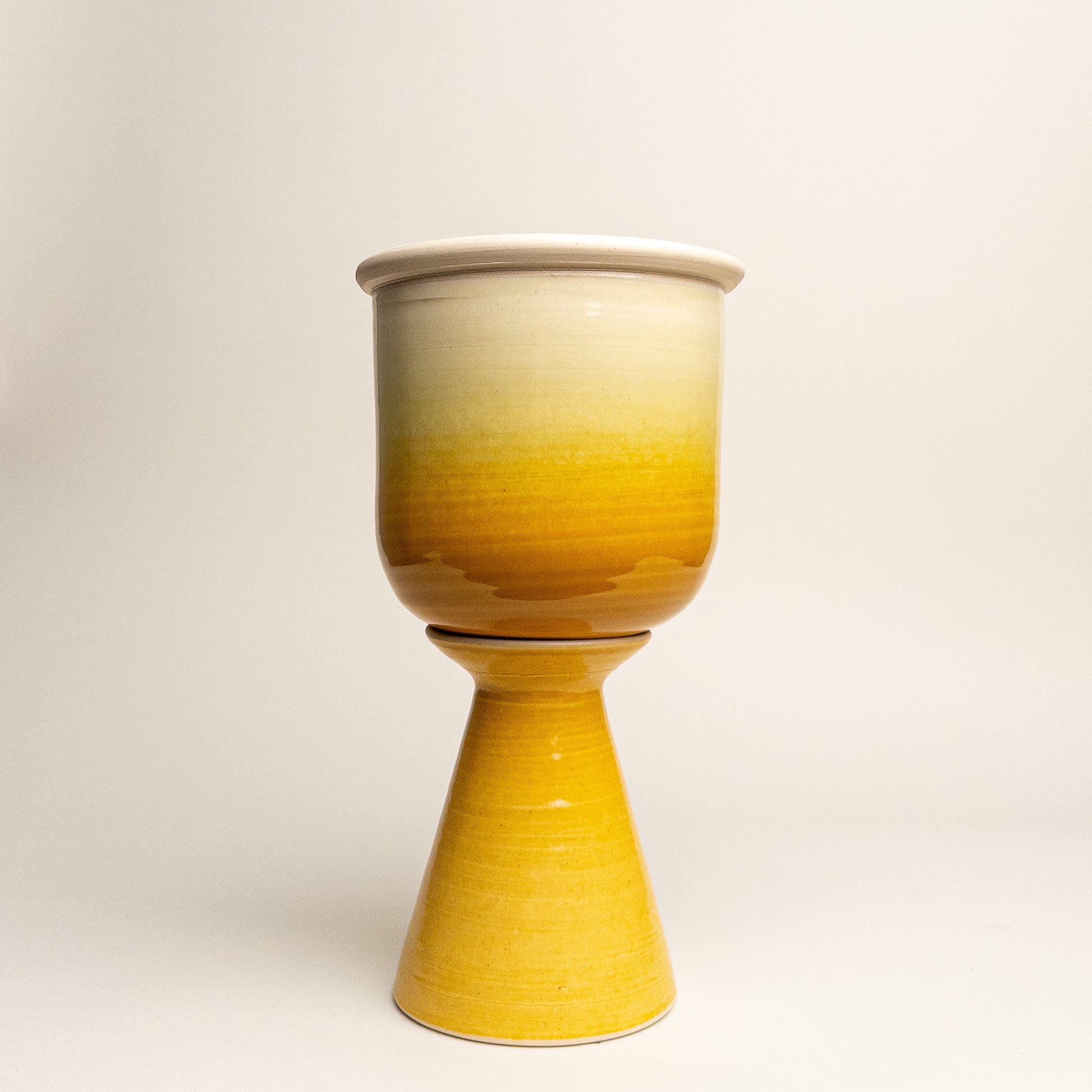 Say hello to the planter of your dreams. This planter is actually two parts: a tall cylinder with a barely-there foot and a drainage hole sits upon a matching pedestal that serves as a drainage basin. The planter vessel is sized for a 4-inch plant to have ample room to grow. The elongated shape encourages deeper roots so you can cultivate taller stems and bigger blooms.
