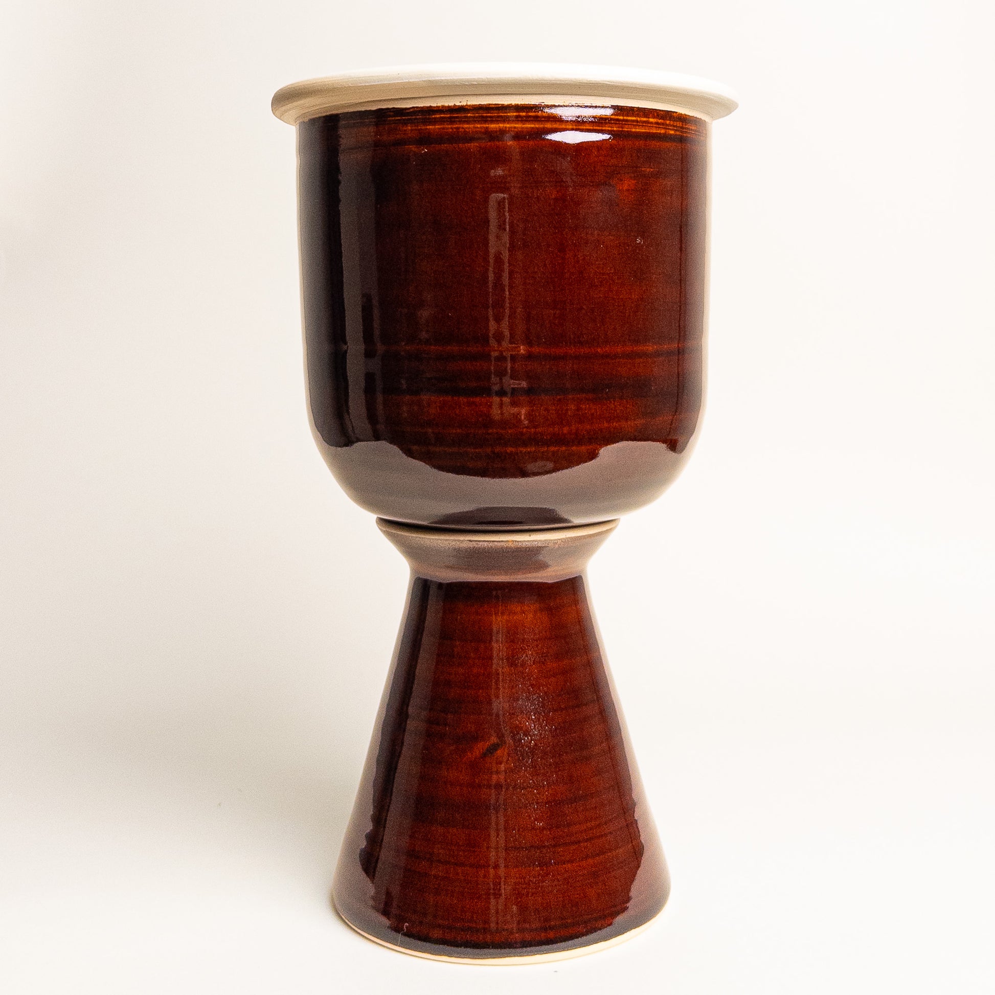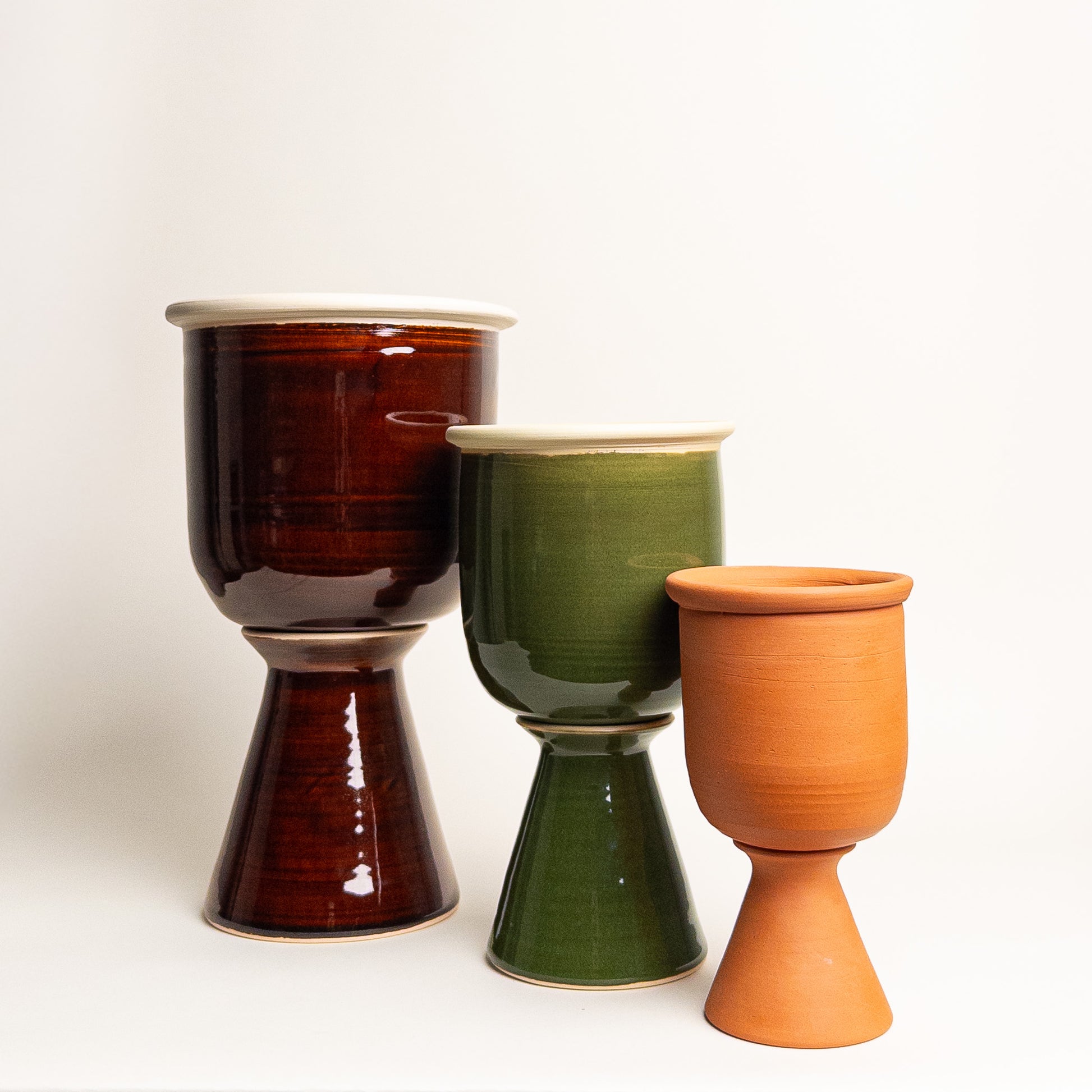 Note: Terracotta pedestals are glazed on the interior but will still patina over time. Terracotta planter vessels are unglazed for superior breathability and weather-resistance.