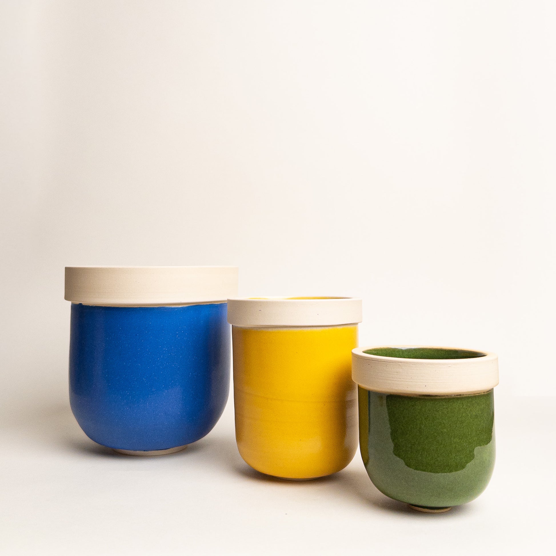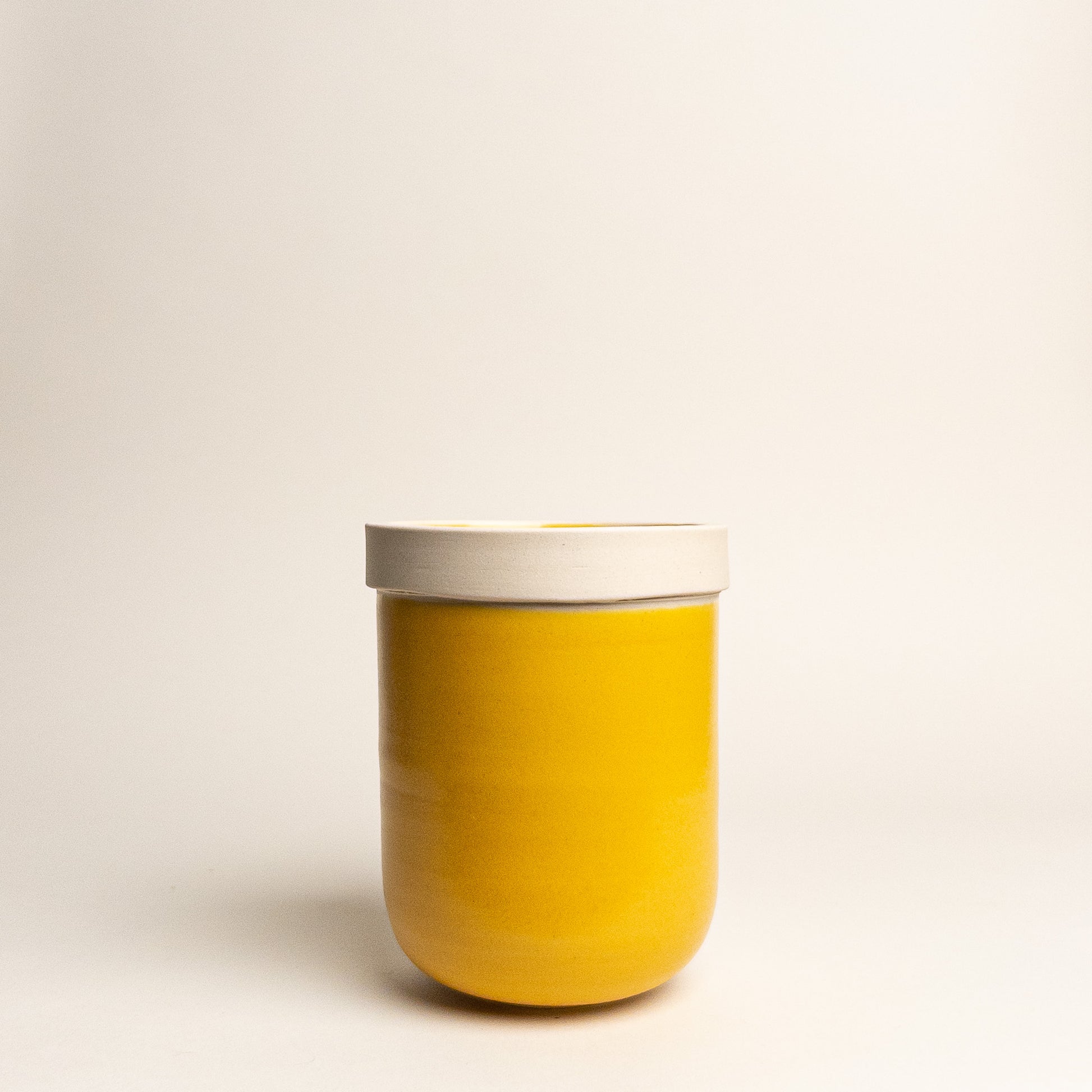 Utility Vessels are all-purpose containers meant to satisfy your need for stylish storage. This is the second largest size. Its narrow form and additional weight is ideal for storing long-handled tools and kitchenware. A simple arrangement of long-stemmed flowers would shine in this vessel too.