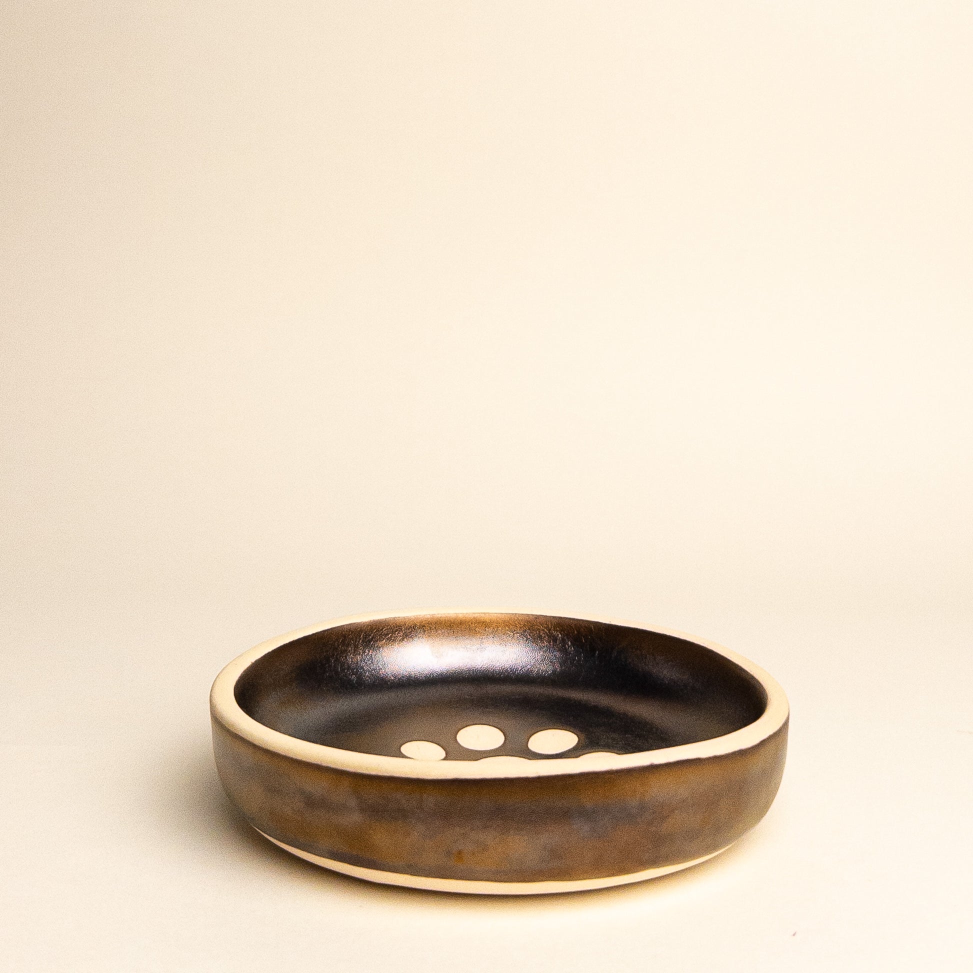 Dia.: approx. 5.4 in. Overall Height: 1⅛ in. Interior Height: approx. 0.7 in. Capacity: 5 fl oz to rim.